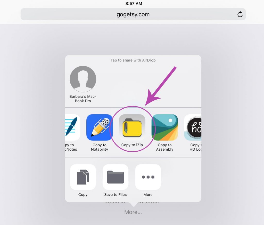 Tap on the “MORE” link to open the list of your apps so that you can open the zip file with iZip.