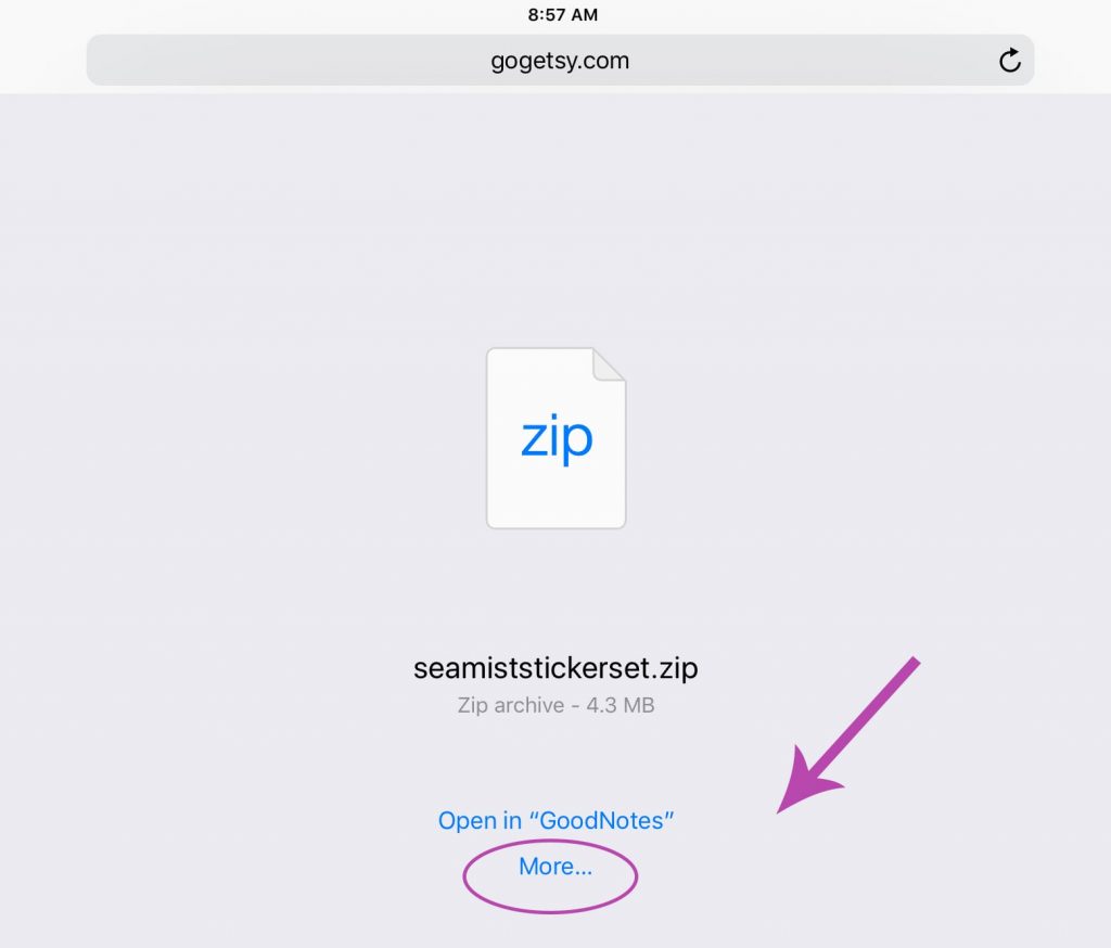 Choose “Copy to iZip” to open your sticker zip file.